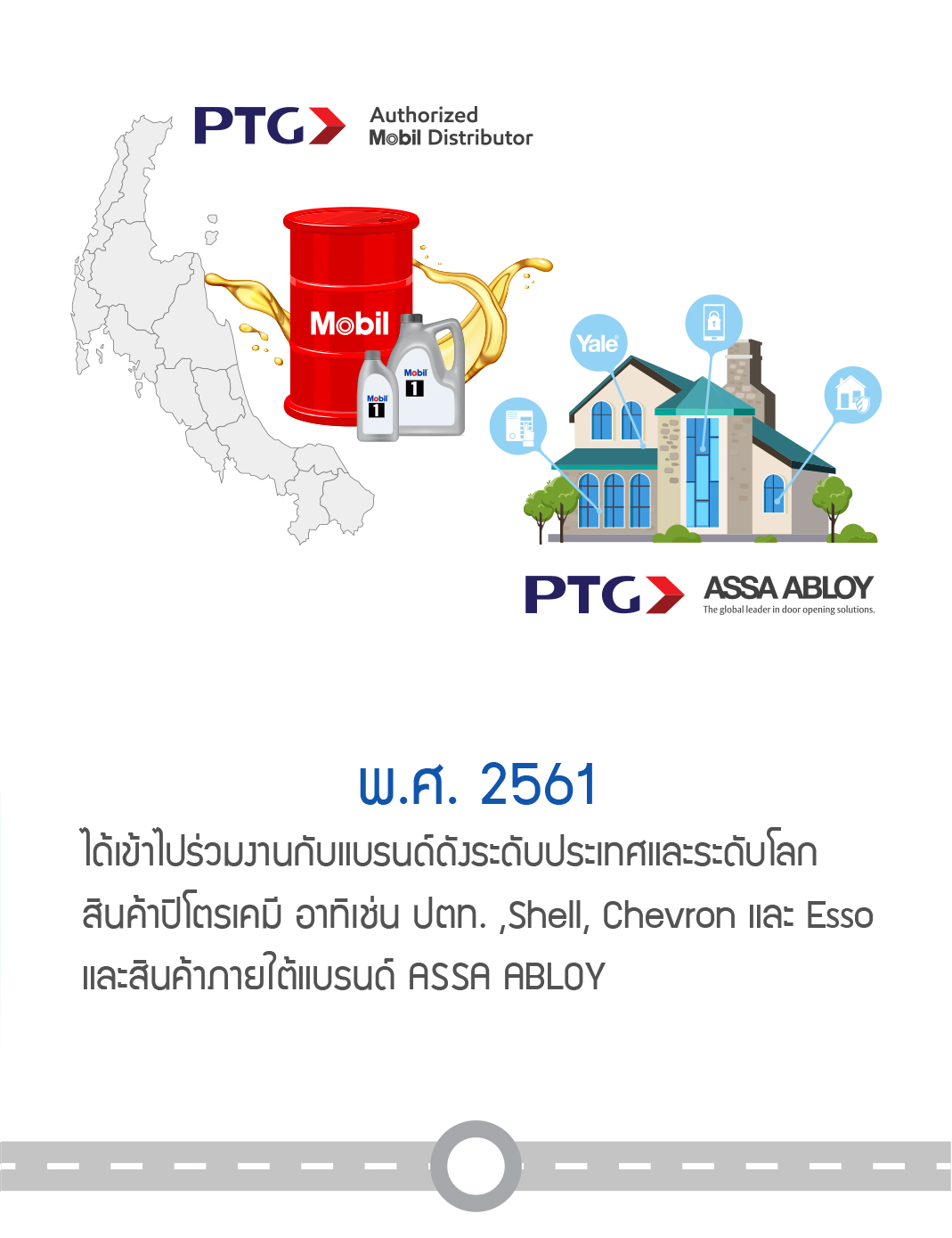 ได้เข้าไปร่วมงานกับแบรนด์ดังระดับประเทศและระดับโลก อาทิเช่น ปตท. ,Shell, Chevron และ Esso ได้รับแต่งตั้งเป็นผู้แทนจำหน่ายผลิตภัณฑ์น้ำมันหล่อลื่น "ภายใต้แบรนด์ Mobil" รายเดียวในภาคใต้ และได้รับการแต่งตั้งเป็นผู้แทนจำหน่ายสินค้า "ภายใต้แบรนด์ Assa abloy"