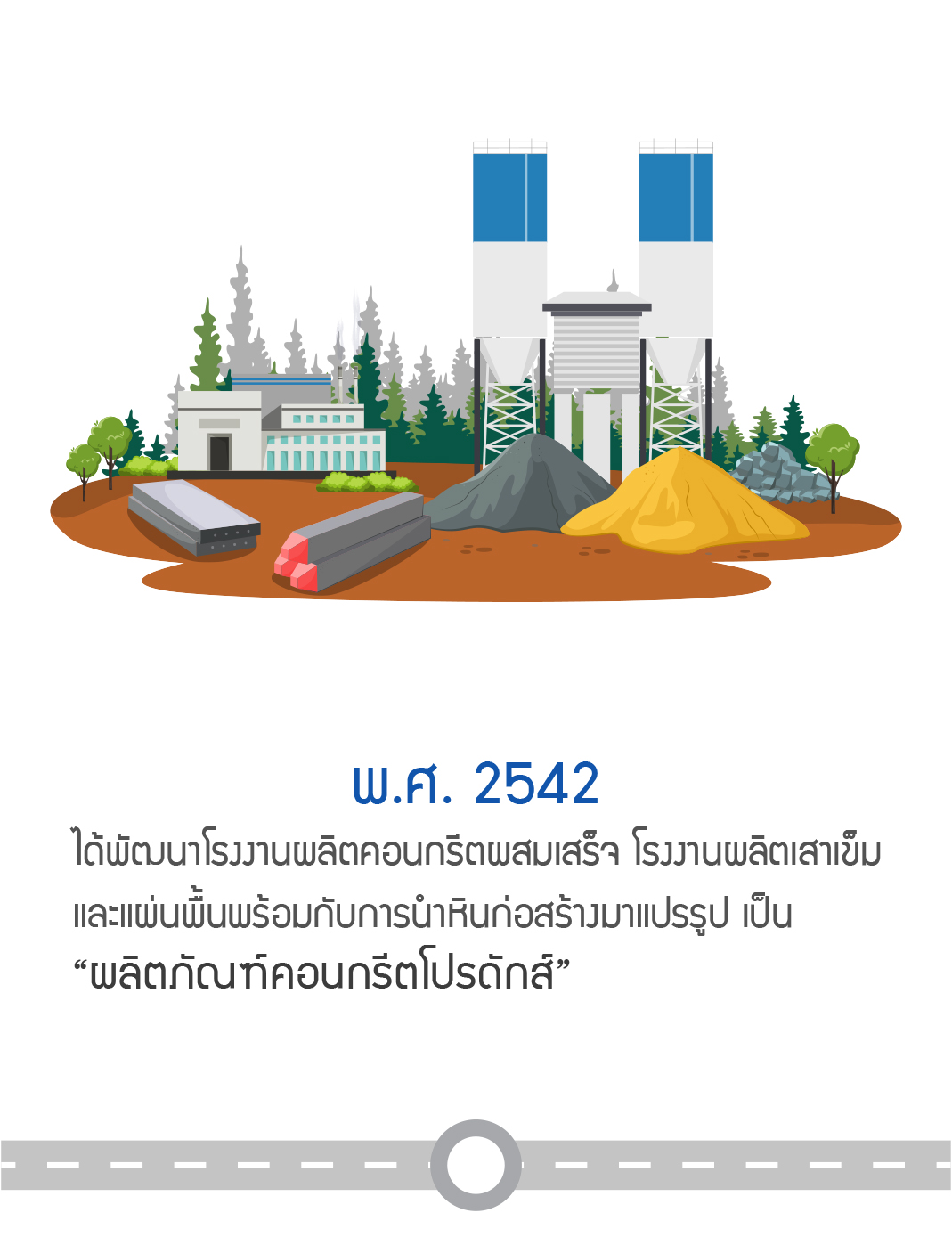ได้พัฒนาโรงงานผลิตคอนกรีตผสมเสร็จ โรงงานผลิตเสาเข็มและแผ่นพื้นพร้อมกับการนำหินก่อสร้างมาแปรรูปเป็นผลิตภัณฑ์คอนกรีตโปรดักส์