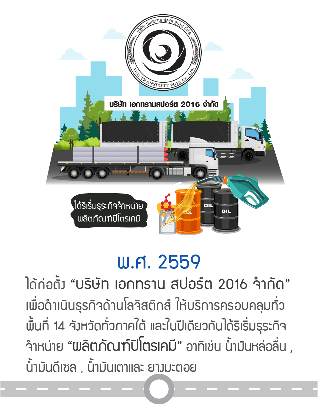 ได้ก่อตั้ง "บริษัท เอกทราน สปอร์ต 2016 จำกัด" เพื่อดำเนินธุรกิจด้านโลจิสติกส์ ให้บริการครอบคลุมทั่วพื้นที่ 14 จังหวัดทั่วภาคใต้ และในปีเดียวกันได้ริเริ่มธุระกิจจำหน่าย "ผลิตภัณฑ์ปิโตรเคมี" อาทิเช่น น้ำมันหล่อลื่น ,น้ำมันดีเซล , น้ำมันเตาและ ยางมะตอย