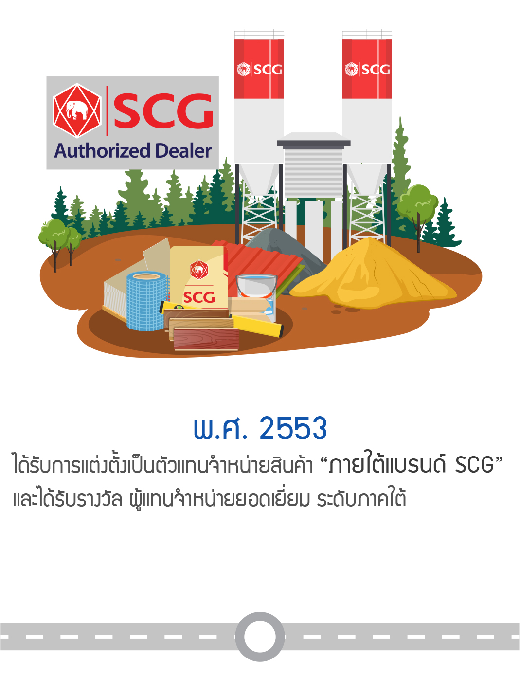 ได้รับการแต่งตั้งเป็นตัวแทนจำหน่ายสินค้า "ภายใต้แบรนด์ SCG" และได้รับรางวัลผู้แทนจำหน่ายยอดเยี่ยม ระดับภาคใต้
